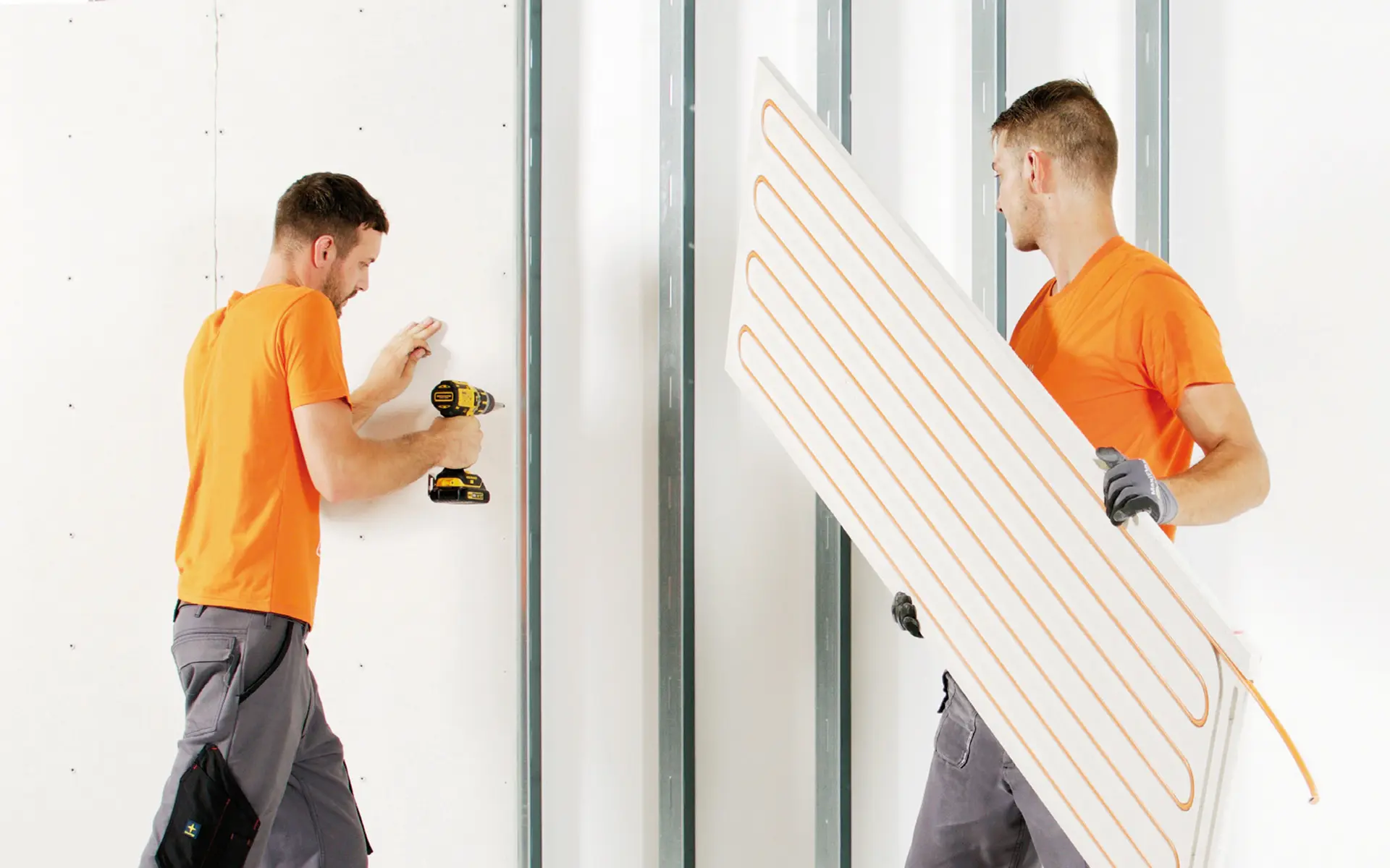 The Variotherm ModuleWall or Ceiling System consists of an 18mm Fibrous Gypsum Panel with the pipes (aluminium multi-layer composite pipes) are supplied integrated in the rear of the panels. In addition to this, the panels can be supplied in several formats allowing for ease of installation.
