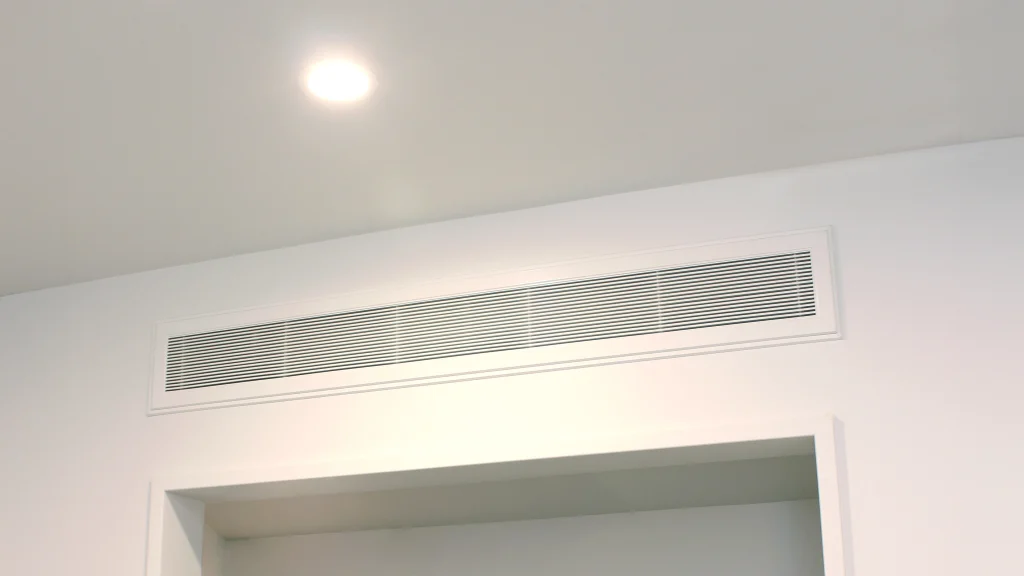 Built-in fan coils sit hidden in walls or ceilings, with only the supply and return grilles visible. They deliver stronger heating and cooling than surface units and can serve a single room or multiple spaces. Ideal for seamless designs, they require careful planning with your installer. Each unit is controlled via a wall-mounted controller, adjusting temperature and fan speed while following the main system’s operating mode.