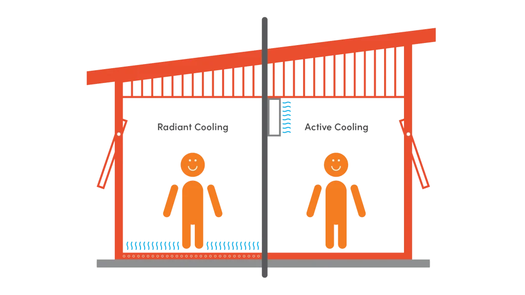- Radiant Cooling uses chilled water through floors, walls, or ceilings to directly cool the space.