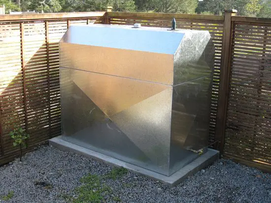 Diesel boilers require the installation of a fuel tank which is located outside the house. The tanks come in two sizes, 460 and 880 litres and are slightly larger than 2 x LPG tanks. Fuel tanks are installed on a concrete pad in an area accessible for refuelling which could be up to 50 metres away from the boiler. Diesel fuel delivery is readily available in all urban and rural areas in New Zealand.
