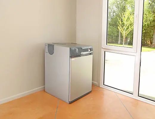 These floor-standing boilers are slightly smaller than a modern washing machine and are typically installed in a garage or laundry. External models are also available which are installed outside and come with an integral flue.