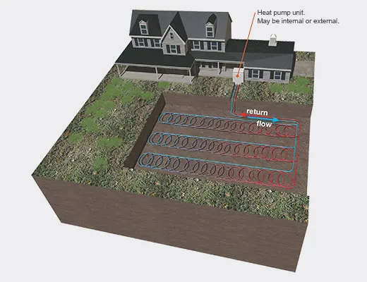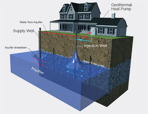 Ground source heat pumps use the earth, or a body of water, as a heat source in winter and as a heat sink during summer. This design takes advantage of the moderate temperatures in the ground (all over the world) to boost efficiency and reduce the operational costs of heating and cooling systems. They are the best form of all renewable energies as the energy from the ground is available 24/7. Geothermal ground sourced heat pumps are more efficient than air source heat pumps and have lower running costs. They do have a higher capital cost due to the ground heat exchanger that the heat pump is connected to. But, they are quieter, inside (less visual impact) and with less moving parts and maintenance.