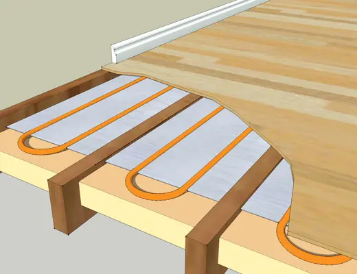 The Spreader Plate underfloor system can be used in new or existing homes. The aluminum spreader plates are fitted between the joists allowing for the pipe to be pressed into the spreader plate.